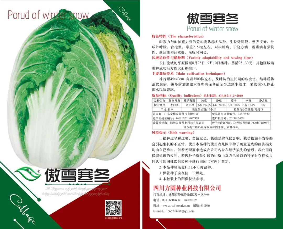 区域适应性与播种期:适合长江流域、西北、西南、北方区域栽培。四川在7月25日至9月5日播种,苗龄20-25天;其他区域请引种成功后方能大面积推广。